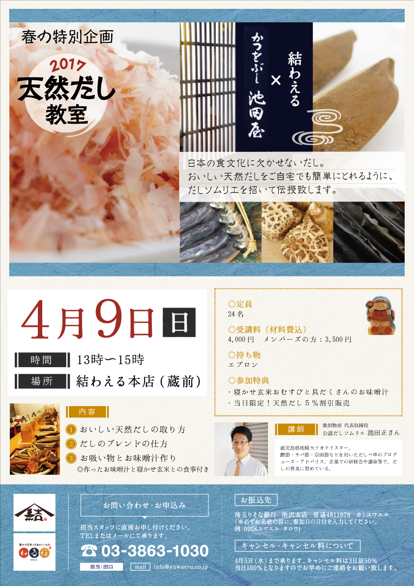 結わえる『天然だし教室』→ 〆ご予約締切ました。