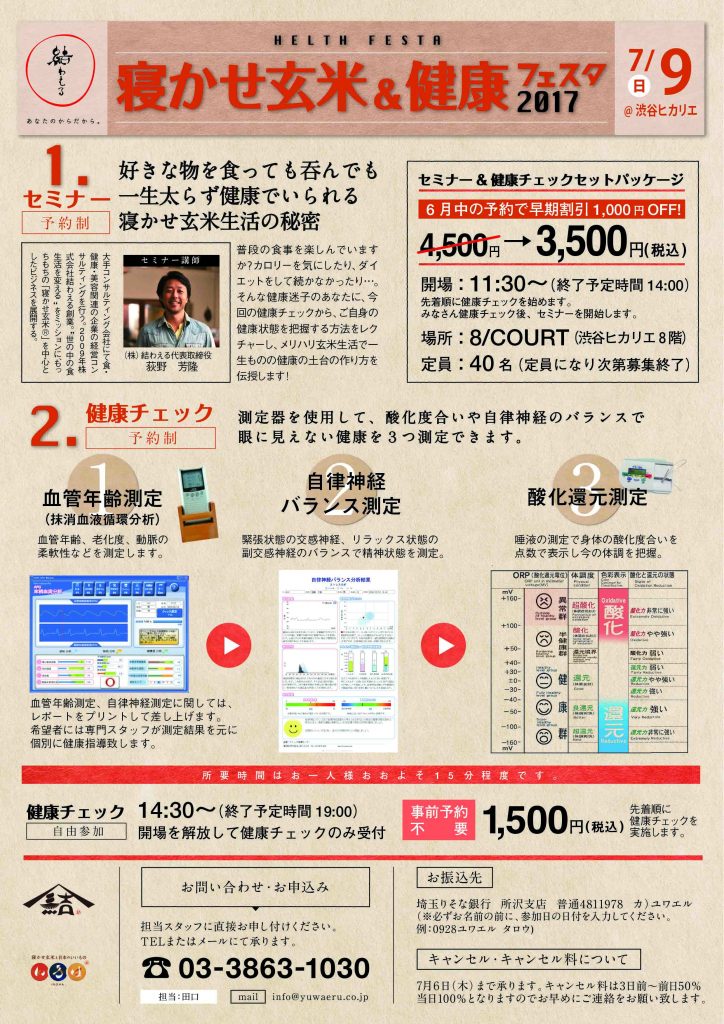 “寝かせ玄米&健康フェスタ2017″を開催いたします!
