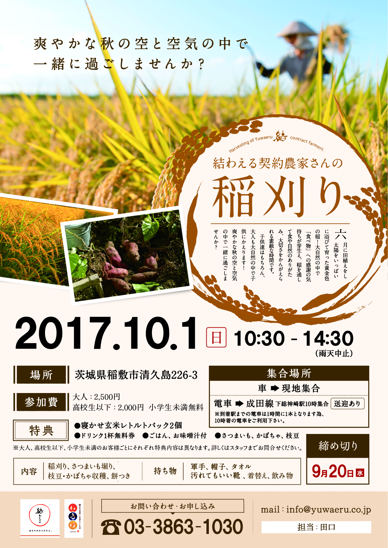 2017年結わえる契約農家さん稲刈り&野菜収穫イベント → 満員御礼!締め切りました。