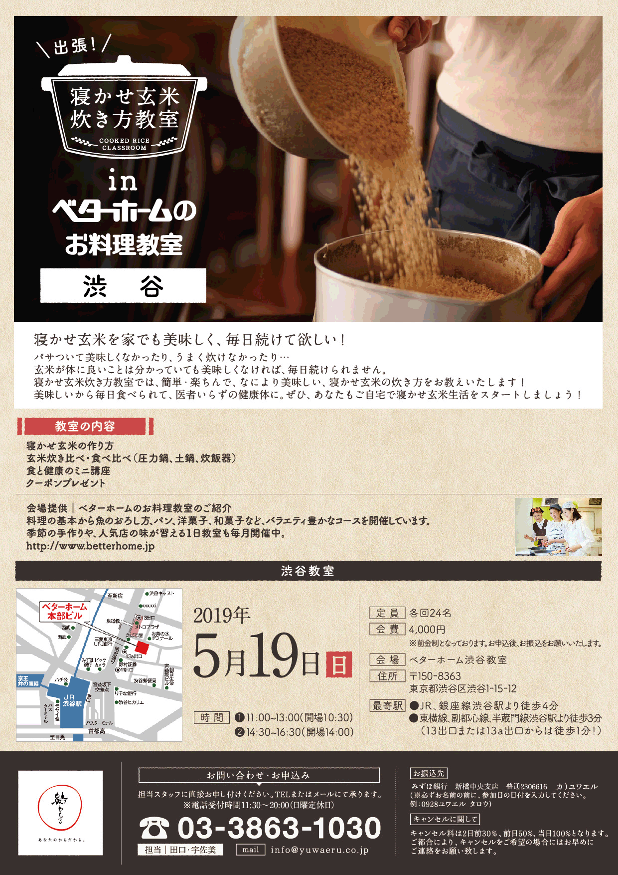 2019年5月、「ベターホームのお料理教室」にて『出張!寝かせ玄米炊き方教室』を開催いたします!