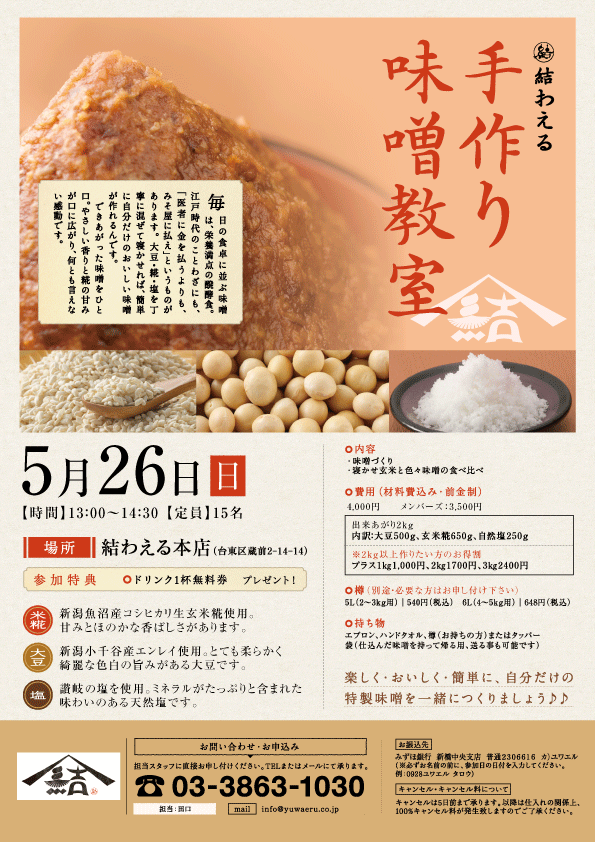 2019年5月 結わえる手づくり味噌教室-満員御礼〆締め切りました!