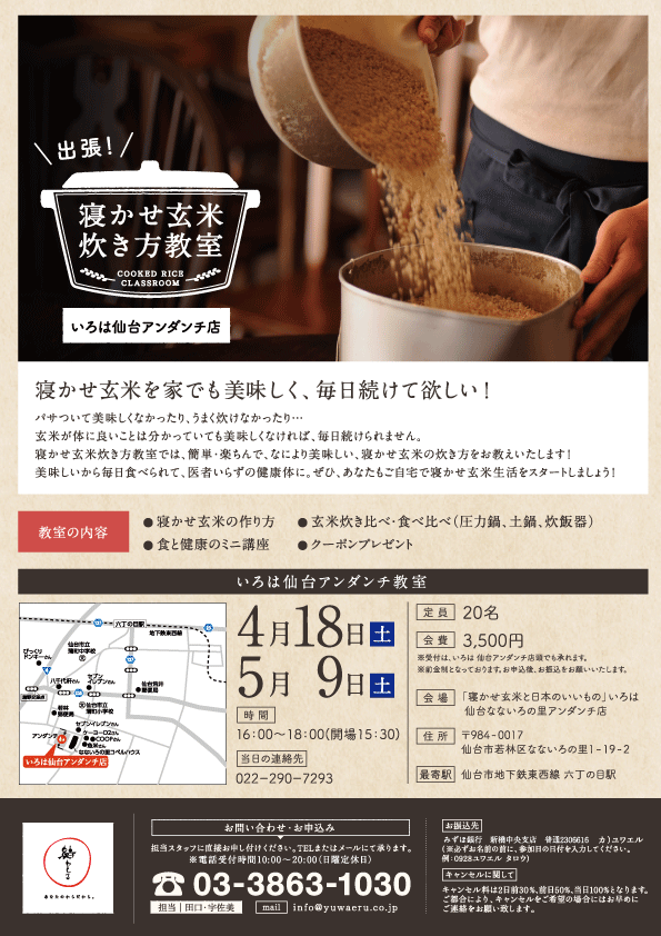 2020年4月・5月『出張!寝かせ玄米炊き方教室inいろは 仙台なないろの里アンダンチ店』