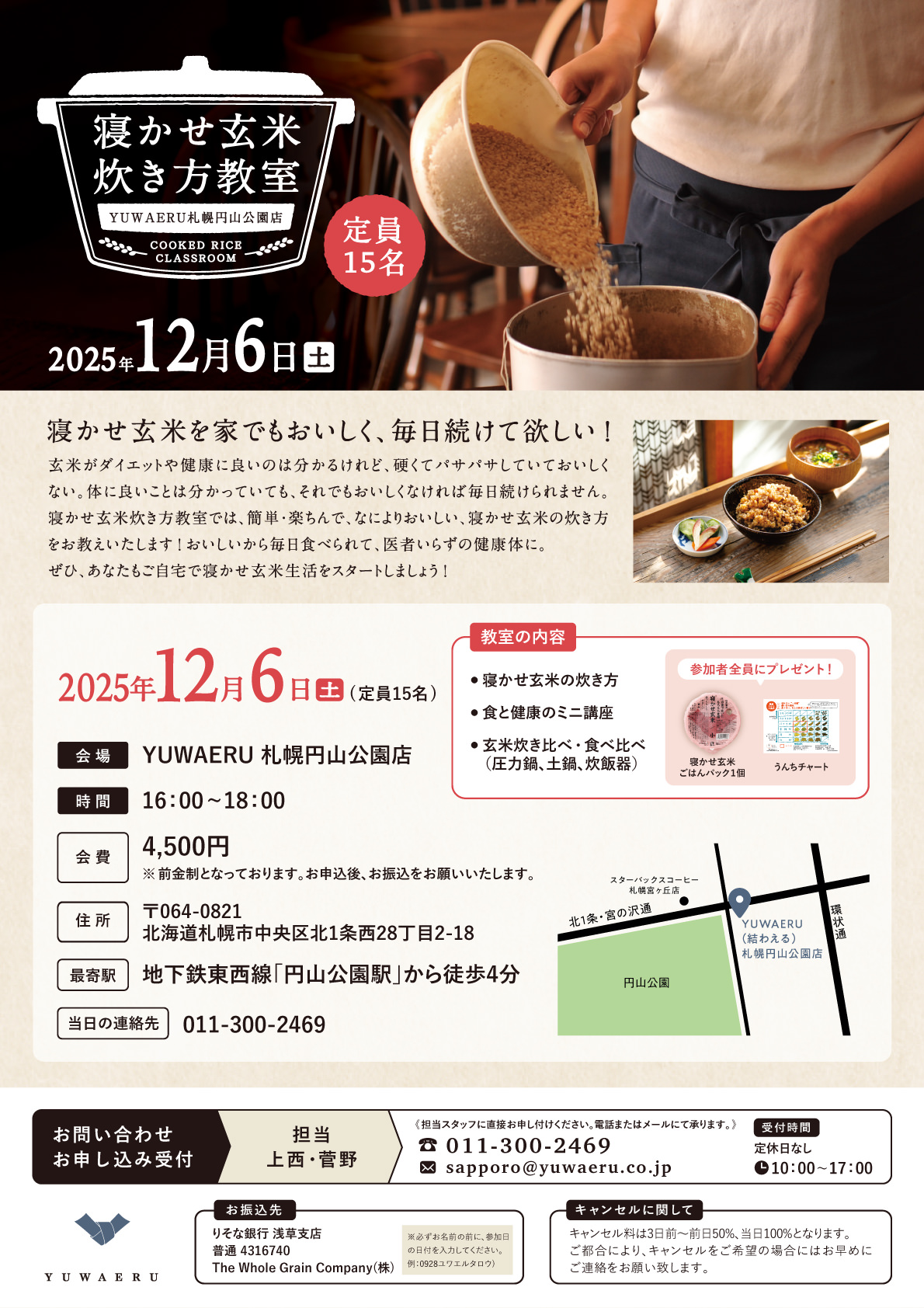 2025年12月度の札幌店『寝かせ玄米炊き方教室』- 満員御礼締め切りました!